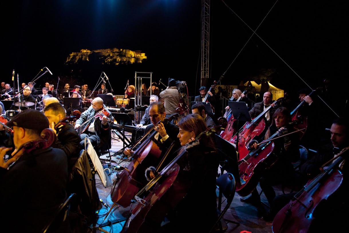 Στη μεγάλη σκηνή με φόντο τη φωτισμένη Ακρόπολη, στις 23.45 η Συμφωνική Ορχήστρα του δήμου Αθηναίων, υπό τη Διεύθυνση του Αρχιμουσικού Ανδρέα Τσελίκα, δίνει το ρυθμό για την αλλαγή του χρόνου με χριστουγεννιάτικα τραγούδια.