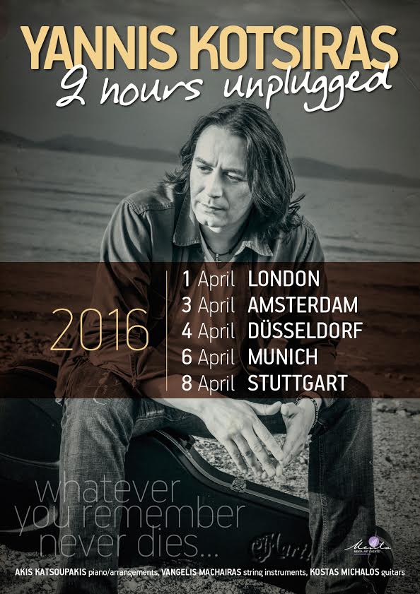 Τι θα λέγατε για δύο ώρες απόλυτης μουσικής απόλαυσης δίχως ίχνος ηλεκτρισμού και παραμόρφωσης; Σε μια μοναδική ευρωπαϊκή περιοδεία, ο Γιάννης Κότσιρας ξεδιπλώνει μία εικοσαετία διαδρομής στο ελληνικό τραγούδι, παρουσιάζοντας ακουστικές, «unplugged» εκδοχές αγαπημένων ελληνικών τραγουδιών.