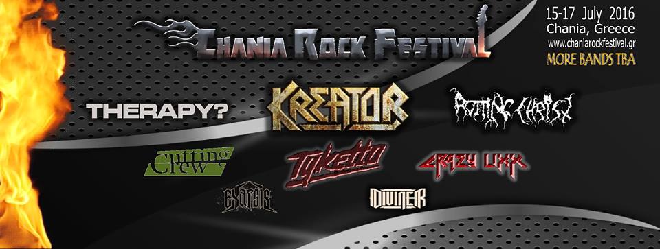 Το Chania Rock Festival, είναι ένα από τα παλιότερα και σημαντικότερα φεστιβάλ στην Ελλάδα, που ξεκίνησε το 2002 και φέτος θα διοργανωθεί για 10η φορά, στην πόλη των Χανίων, στον Προμαχώνα San Salvatore από τις 15 έως τις 17 Ιουλίου και μέχρι στιγμής έχουν ανακοινωθεί οι: Kreator, Rotting Christ, Therapy?, Cutting Crew, Exarsis, Diviner, Tyketto και Crazy Lixx.