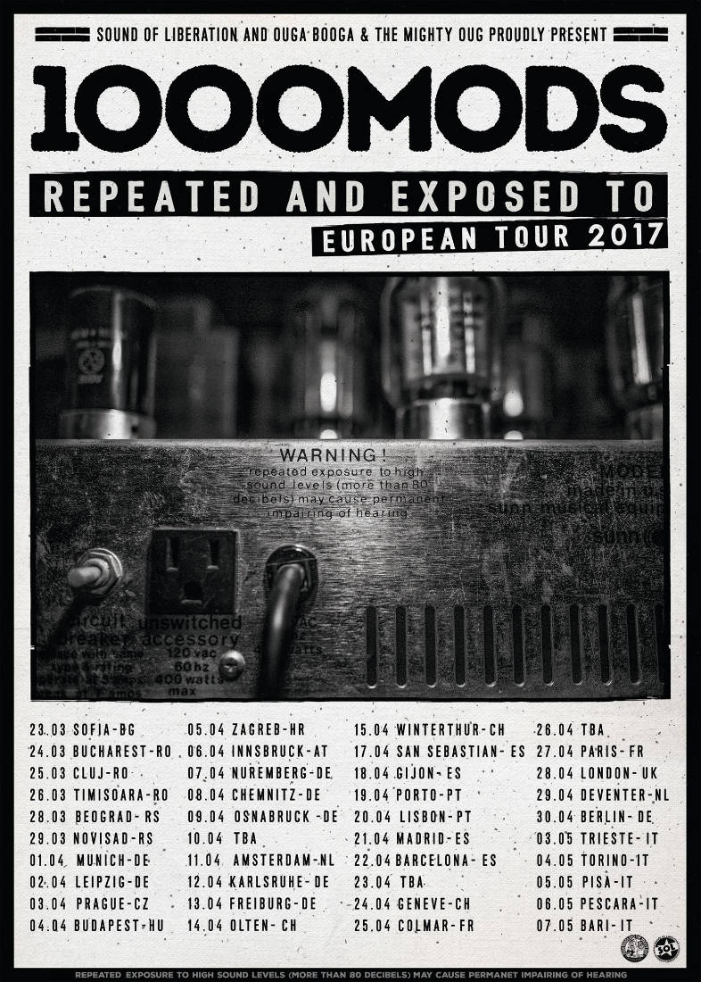 Οι heavy rockers 1000mods μόλις ανακοίνωσαν τις στάσεις της επερχόμενης headline πανευρωπαϊκής περιοδείας τους “Repeated and Exposed” Tour 2017, η οποία πραγματοποιείται με σκοπό την προώθηση του τελευταίου album τους “Repeated exposure to...”, και περιλαμβάνει 40 συναυλίες σε 15 ευρωπαϊκές χώρες.