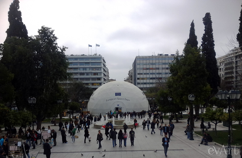 Τα βλέμματα αλλά και το ενδιαφέρον των περαστικών κεντρίζει από σήμερα ένας μεγάλος λευκός θόλος στην Πλατεία Συντάγματος, στο κέντρο της Αθήνας. Πρόκειται για τη European Space Expo, ή αλλιώς την Ευρωπαϊκή Έκθεση Διαστήματος που επισκέπτεται για πρώτη φορά την Ελλάδα.