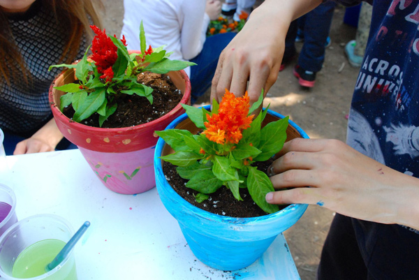 Στη συνέχεια, γίνονται «μικροί κηπουροί» και, με τη βοήθεια ειδικών, φυτεύουν στα γλαστράκια τους πολύχρωμα λουλούδια ενώ μαθαίνουν να είναι υπεύθυνα για τη φροντίδα τους!
