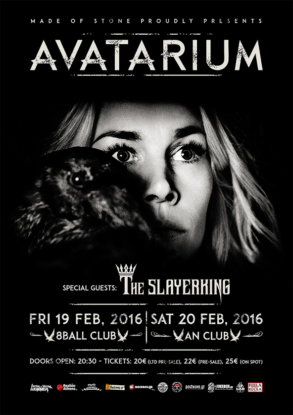 Λίγο μόλις καιρό μετά την κυκλοφορία του αριστουργηματικού "The Girl With The Raven Mask" οι AVATARIUM θα βρεθούν στην Ελλάδα για δύο εμφανίσεις στις 19 και 20 Φεβρουαρίου σε Θεσσαλονίκη και Αθήνα αντίστοιχα, στις οποίες θα κληθούν να μας αποδείξουν γιατί λατρεύτηκαν παγκοσμίως για αυτό το πρόσφατο δισκογραφικό τους πόνημα, αλλά και γιατί θεωρούνται ένα από τα πιο "φρέσκα", αυθεντικά και ανερχόμενα metal μουσικά σύνολα του καιρού μας.