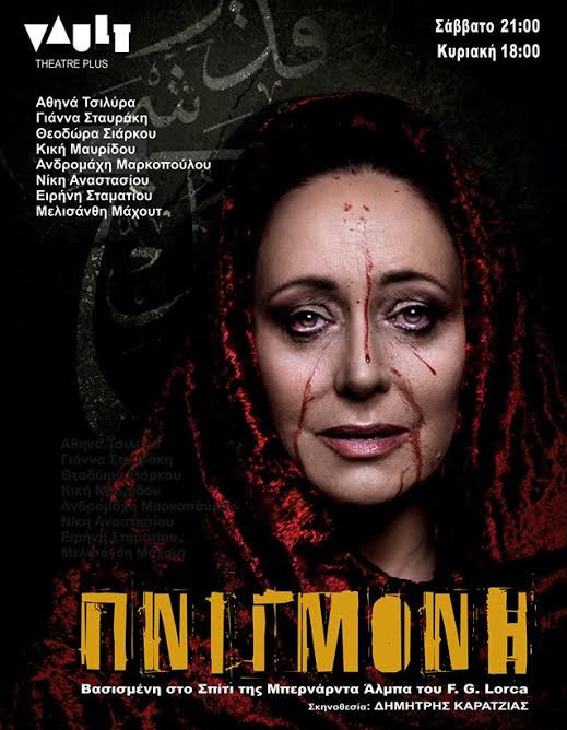 Συνεχίζονται από το Σάββατο 10 Ιανουαρίου και κάθε Σάββατο και Κυριακή, ως τις 05 Απριλίου 2015 στον Πολυχώρο Vault, λόγω επιτυχίας, οι παραστάσεις του θεατρικού έργου «Πνιγμονή», μια εκδοχή του σπιτιού της Μπερνάρντα Άλμπα, σε διασκευή και σκηνοθεσία Δημήτρη Καρατζιά, μεταφέροντας το αριστούργημα του Federico García Lorca από την Ισπανία του 1936 στην Ανατολική Τουρκία του 2013, με αφορμή τα εγκλήματα τιμής, τον θρησκευτικό φανατισμό, τον πουριτανισμό της κοινωνίας και την απάνθρωπη καταπίεση των γυναικών στις Μουσουλμανικές Χώρες.