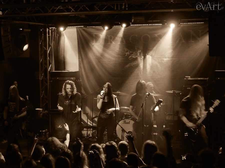 Κάπως έτσι έφτασε η ώρα των Draconian, με το Club του Κυττάρου να είναι γεμάτο με ανυπόμονους fans. Οι Draconian εμφανίστηκαν με 50% διαφορετικό line up, όχι μόνο όσον αφορά τη θέση της τραγουδίστριας, που ως γνωστόν η Heike Langhans (ex-Inferium, ex-The Great Sleep, :LOR3L3I:, ISON) έχει αντικαταστήσει την αξεπέραστη Lisa Johansson, αλλά και με διαφορετικό ντράμερ (στη θέση του Jerry Torstensson έπαιξε ο Tarald Lie από Tristania) και μπασίστα, όπου αντί του Fredrik Johansson ήταν ο "φίλος" της Heike, Daniel Änghede (Crippled Black Phoenix, Hearts of Black Science, ISON). Οι αλλαγές αυτές ίσως ανάγκασαν τη μπάντα να παίξει μόνο 8 τραγούδια για περίπου μία ώρα. Τα κομμάτια ήταν από το καινούργιο τους άλμπουμ "Sovran", από το "Arcane Rain Fell" (2005) και από το "Turning Season Within" (2008).