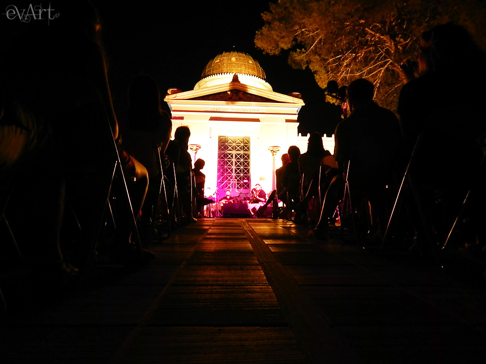 Τον Ανδρέα Κατερινόπουλο συνόδευσαν επί σκηνής ο Μάριος Ιβάν Παπούλιας στο βιολί, η Φιφή Αλεξοπούλου στο τσέλο, ο Δημήτρης Αναστασίου στην κιθάρα και ο Νίκος Αράχωβας στο μαντολίνο και το μπουζούκι, ενώ όλοι μαζί, με τη δεξιοτεχνία τους και τις καλοδουλεμένες συνθέσεις, μας έβαλαν στην κατάλληλη διάθεση, αυτή που δε θα αντιστεκόμασταν για λίγη ακόμη μαγεία. Έτσι, μετά το τέλος της συναυλίας, το κοινό δεν άργησε να πορευτεί προς την άλλη μεριά του αστεροσκοπείου, κάποιοι για να επισκεφθούν το τηλεσκόπιο και κάποιοι για να απολαύσουν τα αστέρια αλλά και τη θέα με γυμνό μάτι.