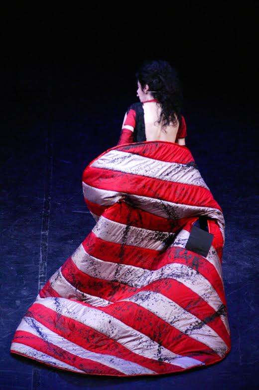 Η σκηνοθεσία. Το έργο είναι σε σκηνοθεσία της ίδιας της Χρύσας Καψούλη. Άδεια η σκηνή. Αρκεί μονάχα ένα «ρούχο» το οποίο θα αποτελέσει στη συνέχεια το σκηνικό τοπίο. Η κάθε κίνηση της Χρύσας Καψούλη είναι άρτια μελετημένη περιγράφοντας τόσο με τα χέρια όσο και με το σώμα την κάθε λέξη του έργου. Η Χρύσα Καψούλη επικοινωνεί συνεχώς με τους θεατές με το έντονο βλέμμα της, πείθοντας τους για όσα τους λέει. Όπως το σκηνικό, έτσι το μακιγιάζ και η ενδυμασία της Χρύσας Καψούλη είναι «όσο χρειάζεται», χωρίς υπερβολές.