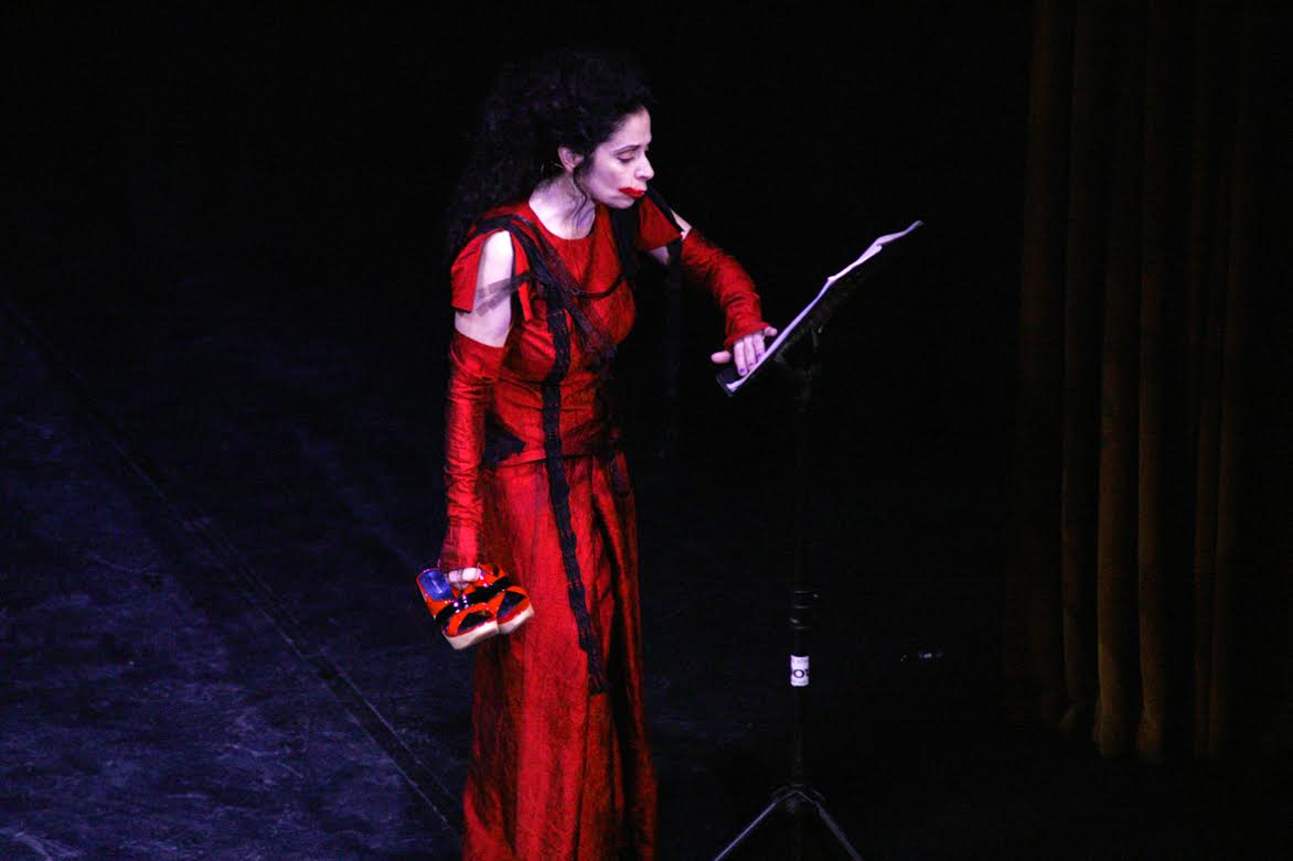 Κρυστάλλινα ρόδα από αίμα παρθένας. Σε όλη τη διάρκεια του έργου ακούγεται μαγνητοφωνημένο το κείμενο ανάποδα και κανονικά- ίσως είναι από την ίδια την Κασσάνδρα... ίσως είναι από κάποια άλλη φωνή. Άγνωστο. Δεν κουράζει ούτε μπερδεύει τον θεατή. Αντιθέτως, ακούγεται ευκρινώς χωρίς να επισκιάζει την βασική φωνή. Ο θεατής καταλαβαίνει αμέσως πως πρόκειται για το ίδιο το κείμενο. Μια έξυπνη τεχνική η οποία κάνει την ατμόσφαιρα υποβλητική. Είναι εντυπωσιακό το πώς η δεύτερη φωνή όχι μόνο δεν επικαλύπτει αλλά δίνει χρώμα, φόρτιση, ένταση και τονίζει την πρώτη φωνή. Η ηθοποιός υποστηρίζει με κάθε τρόπο το έργο αυτό είτε είναι οι κινήσεις της, είτε είναι το ύφος της, είτε είναι τα ίδια της τα λόγια.